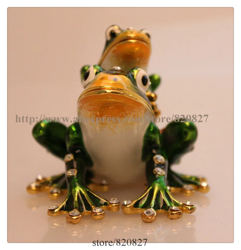 | Frogs Mother and Body Jewelry Trinket Box Decorative Collectible Enamel Frog Family Crystals Jewellery Jewelry Trinket Ring Box |
