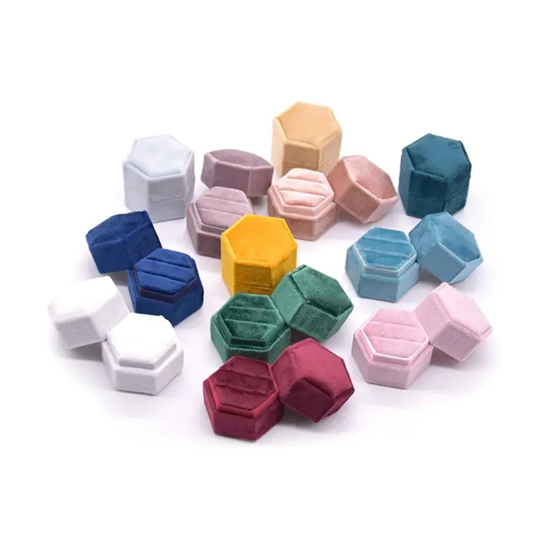 | Velvet Double Ring Box Hexagon Wedding Ceremony Ring Box with Detachable Lid |