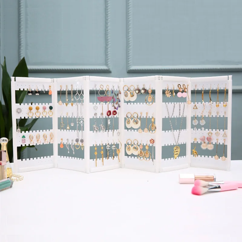 | NewTop Sale White Plastics Earring Storage Doors Design Nice Jewelry Hanging Holder Rack Acrylics Jewelry Display Stand Earrings |