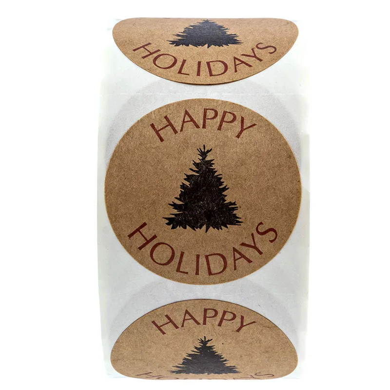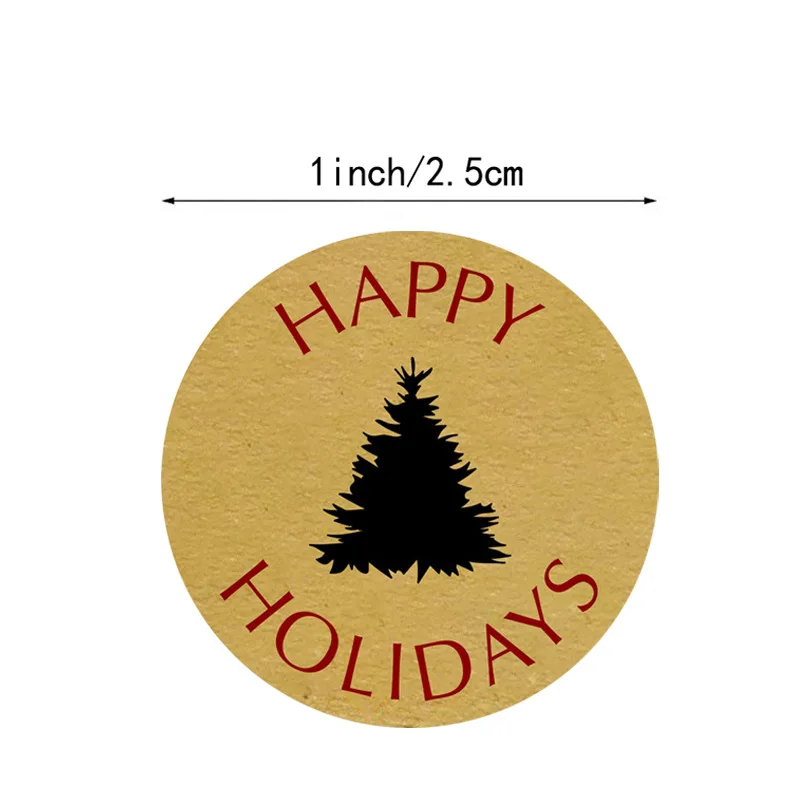 | 1 inch round kraft paper sticker happy holidays packageing sticker christmas decoration holiday gift tag stickers |