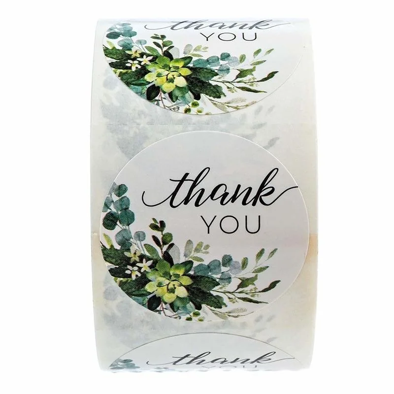 | 500pcs per roll Boho Greenery Thank You Stickers perfect for thank yous, wedding favors, small business owners and boutiques |