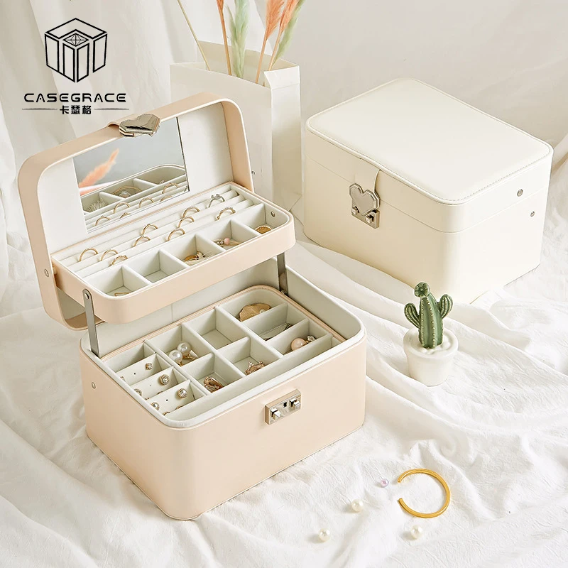 | Casegrace Large Automatic Jewelry Box With Lock Exquisite Three Layer Leather Earrings Storage Casket Portable Fashion Gift Box |