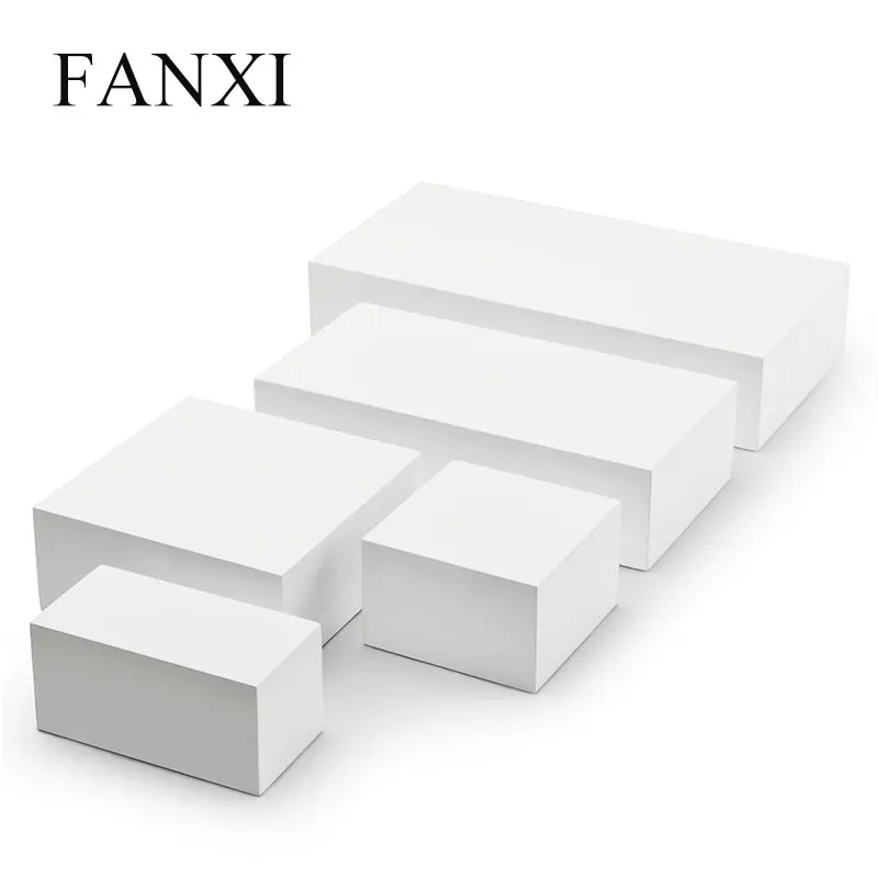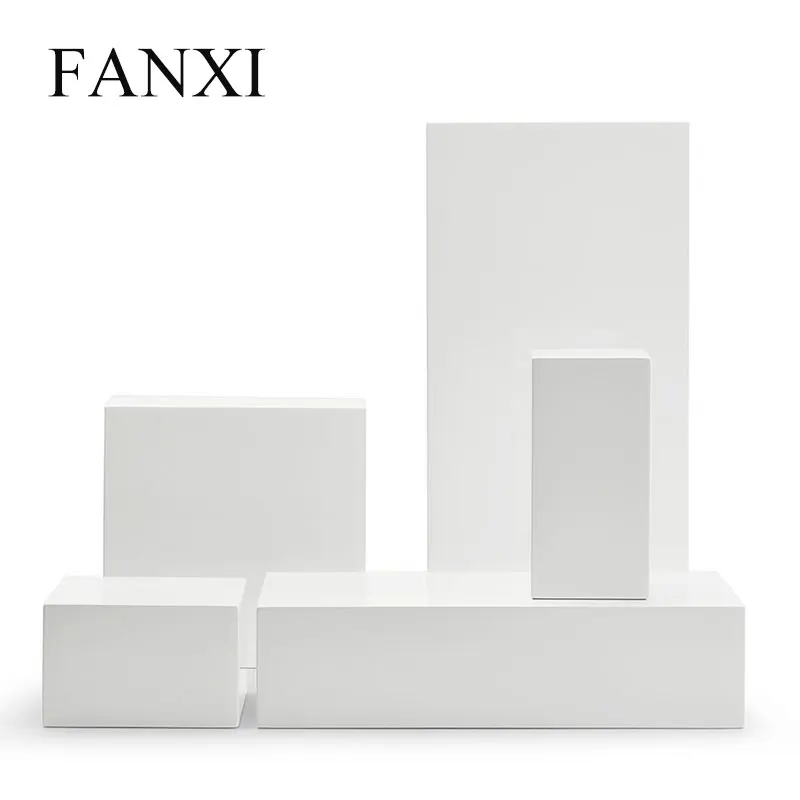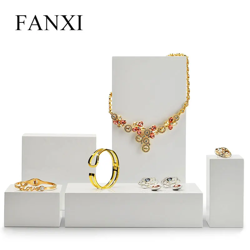 | FANXI New Product White Jewelry Display Table Set Wooden Ring Bracelet Display Stand Earring Pendant Holder Box for Showcase |