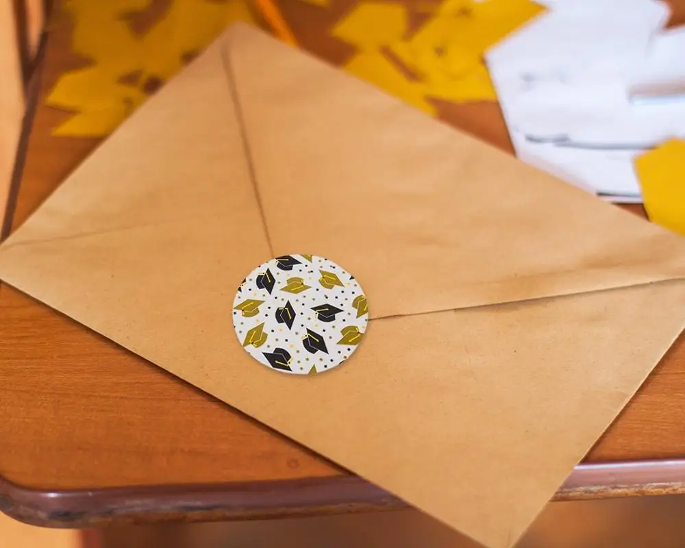 | 500pcs roll 8 designs Round graduation stickers graduation caps and diploma labels student stationery grad stickers |