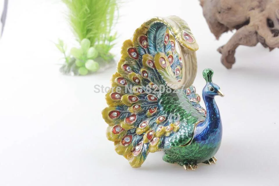 Best Price Comparison With 100% Handmade Enamel Peacock Trinket Boxes Decorations Metal Peacock Display Crafts