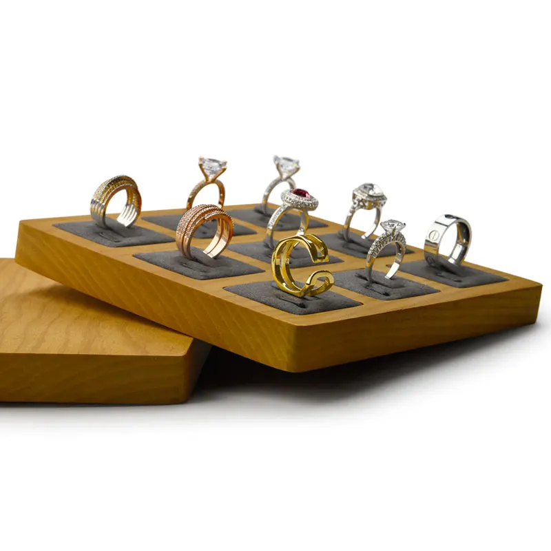 | Solid wood Cream-white&Dark gray 9 Seats Ring Display Stand Ring Tray with Microfiber insert Ring Holder Jewelry Organizer |