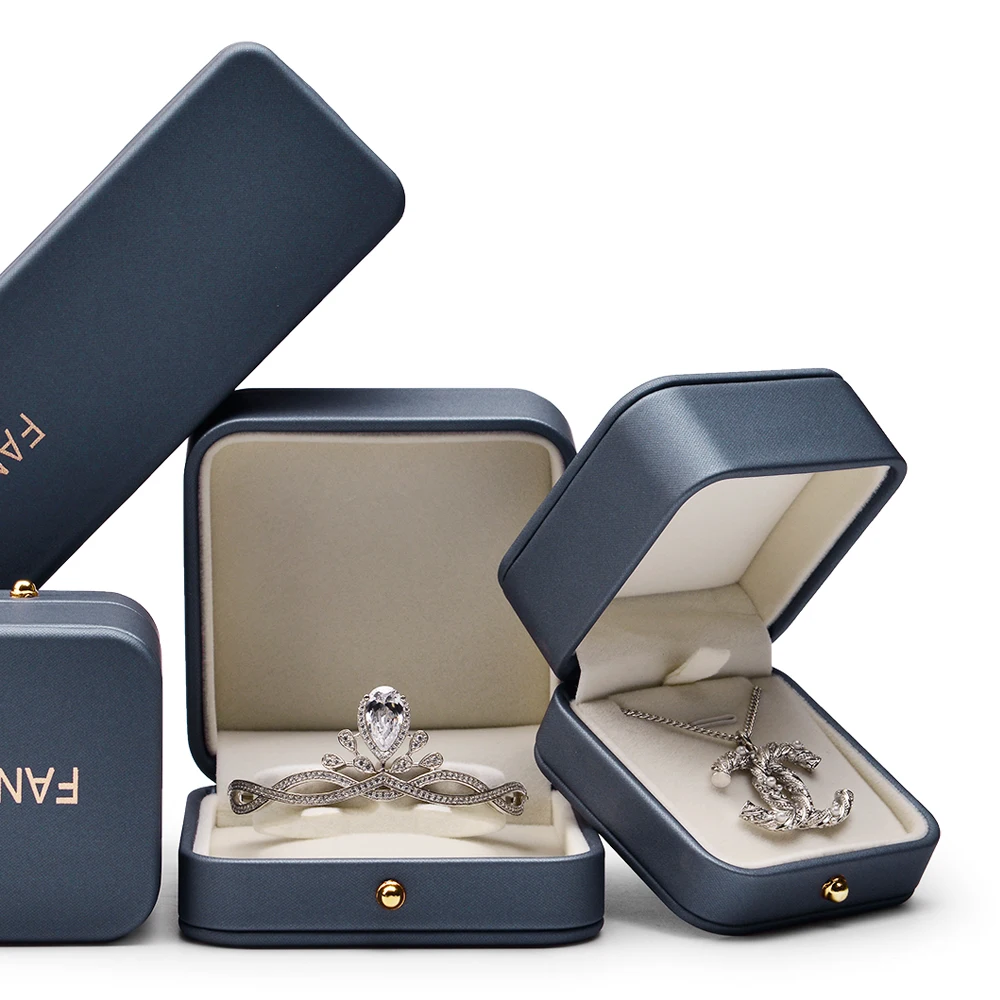 | Oirlv Bule PU Leather jewelry Box with Metal Button of Ring Pendant Bracelet Box packaging Showcase |