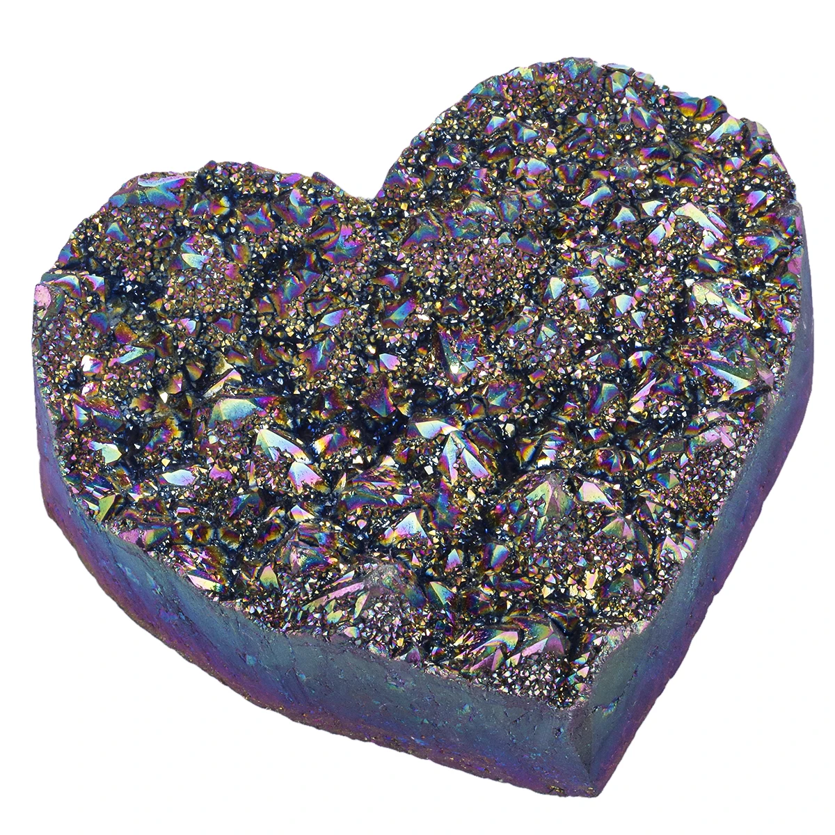 | TUMBEELLUWA Rainbow Titanium Coated Natural Crystal Quartz Cluster Geode Heart Shape Stone Figurine for Reiki Healing Home Decor |
