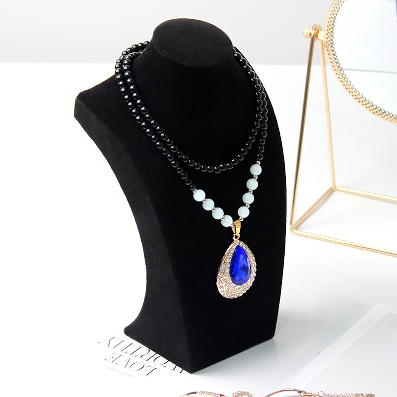 | Black Velvet 24cm High Necklace Mannequin Bust Pendant Jewelry Display Stand Holder Shelf Showcase Jewelry Organizer YSUMI |