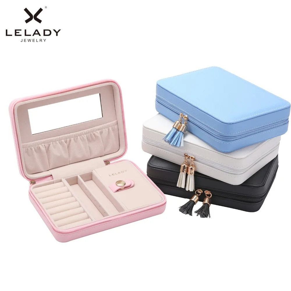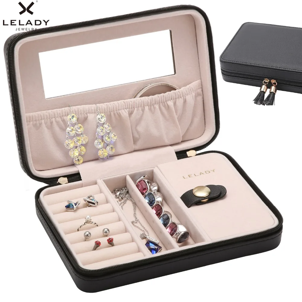 LELADY 18*5*13cm Portable Travel Small Jewelry Box Storage Organizer Box with mirror Inside Velvet Leather Jewelry Box for women