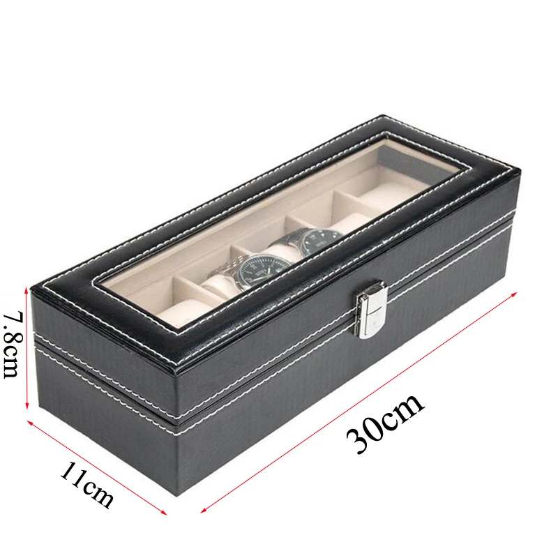 | Watch Box Black 6 Grid Leather Fashion Watch Box Display Case Watch Storage Organizer Box Holder Jewelry Box Bracelet Organizer |