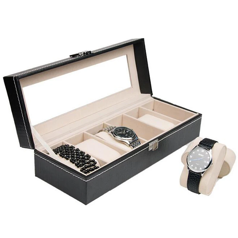 Best Price Comparison With Watch Box Black 6 Grid Leather Fashion Watch Box Display Case Watch Storage Organizer Box Holder Jewelry Box Bracelet Organizer