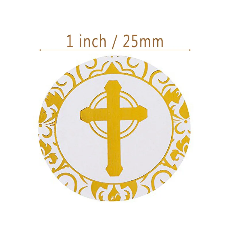 | Bronzing Cross Sticker Round Religion Christianity Prayer Sticker Envelope Sealing Label 500pcs roll Party Favors Tags |