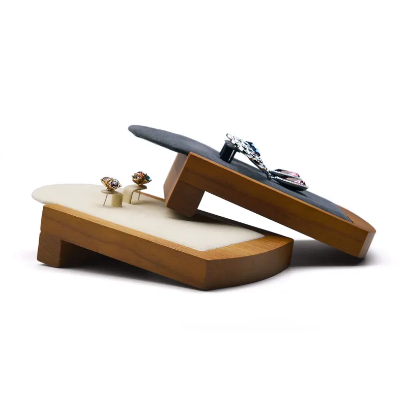 | FANXI Beige &Dark gray Earrings Display Props with Solid wood and Microfiber internal for Exhibition Eail Nail showcase |