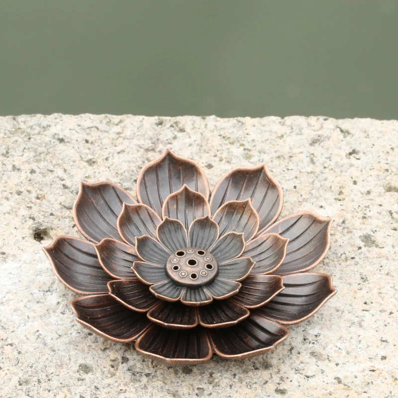 | Simple and elegant Lotus incense Burning plate copper alloy 5 hole slot Ash tray Aesthetic design |