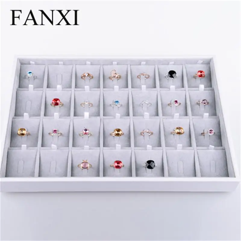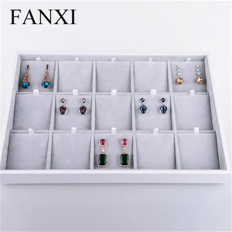 Best Price Comparison With FANXI Free Shipping Luxrious 32pairs EarringsEar Stud Display Holder Showcase Silver Gray Plush Jewlery Display Tray Exhibitor