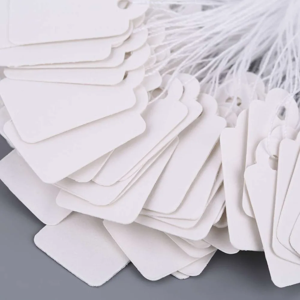 | 100 Pcs Rectangular Blank White Price Tag With String Jewelry Label Promotion Store Accessories |