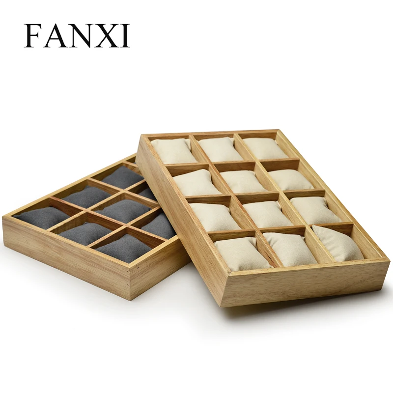 | FANXI New Solid Wood 12 Grids Jewelry Display Tray Watch Bangle Organizer with Microfiber insert 2 Colors Options |