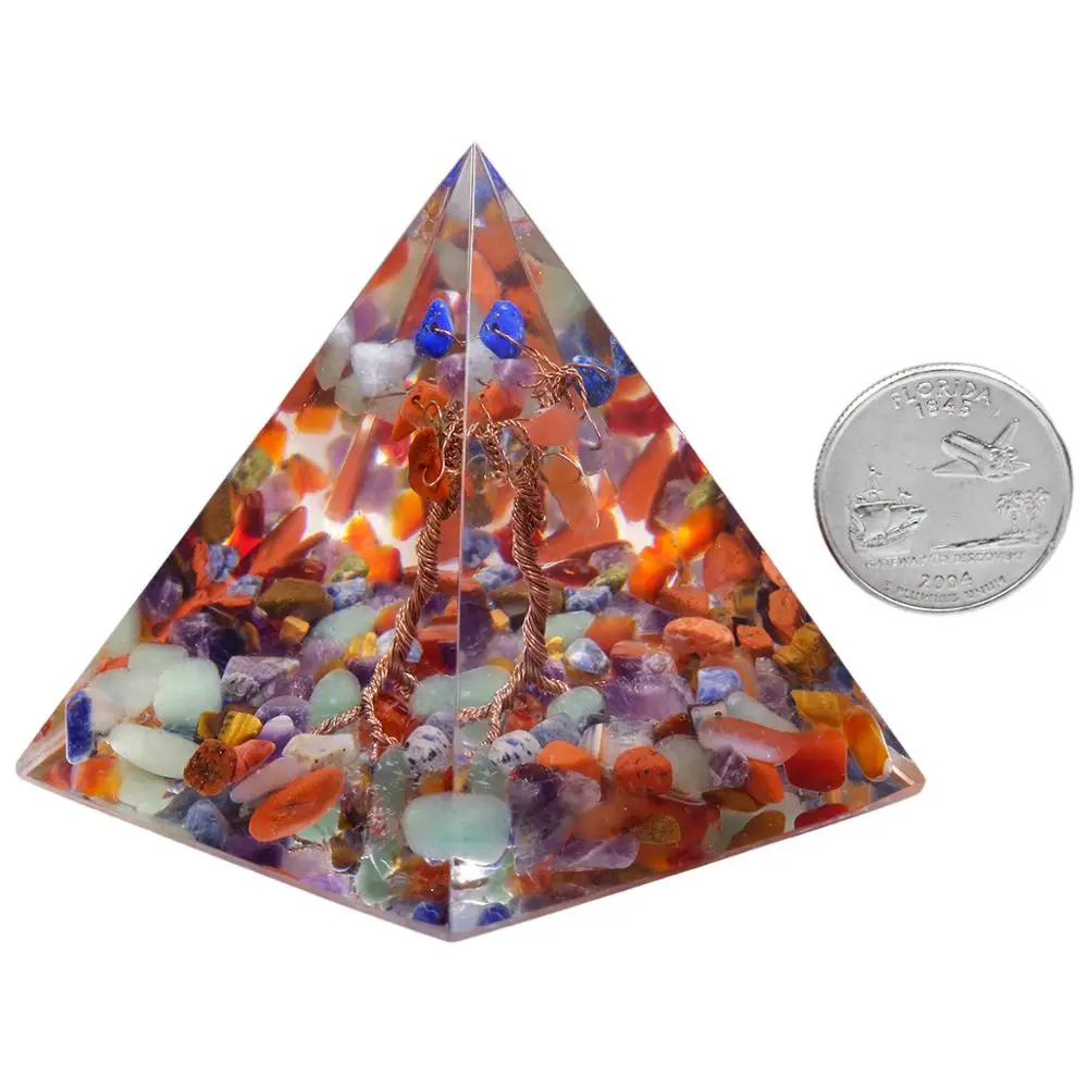 | TUMBEELLUWA Chakra Crystal Gravel Tree of Life Orgone Pyramid Energy Generator Resin Metal Handmade Figurine for Reiki Balancing |