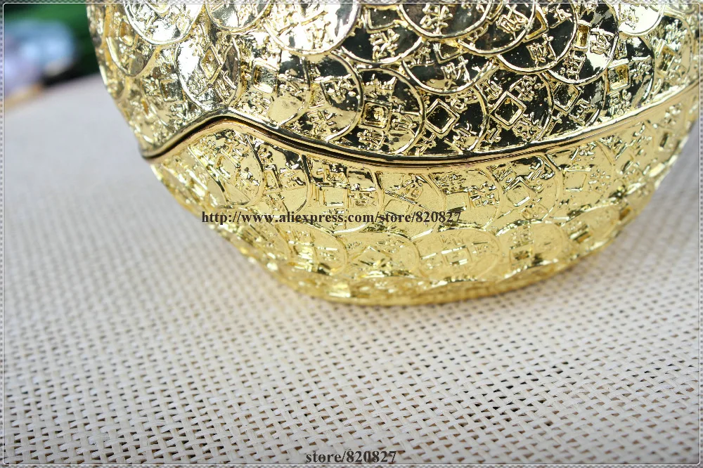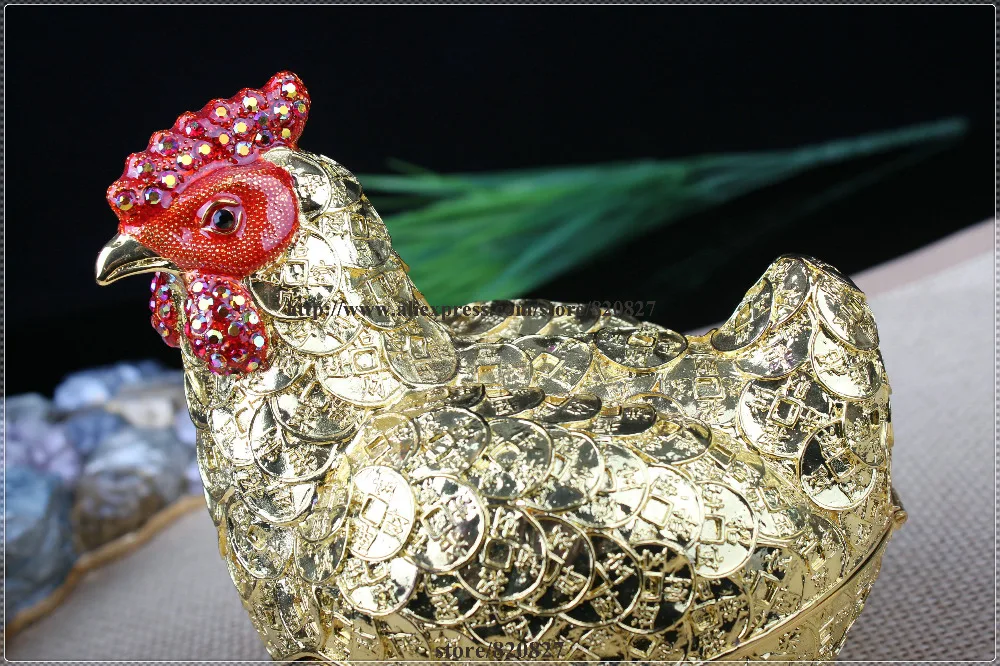 Good Luck and Godd Fortune Bring Rooster Chicken Statue Trinket Jewelry Box Fengshui Chicken Jewelry Box with Coins Covered