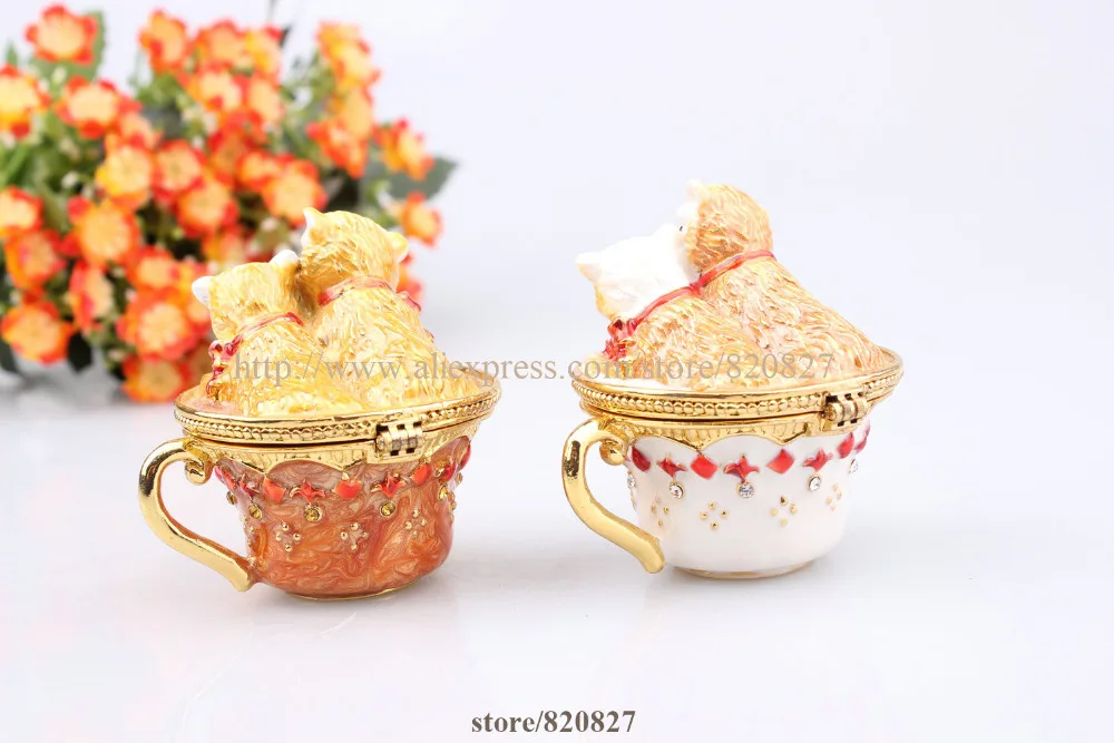 Best Price Comparison With Cupcake Jewelry Trinket Box with 2 Cats with Multi Color Crystals