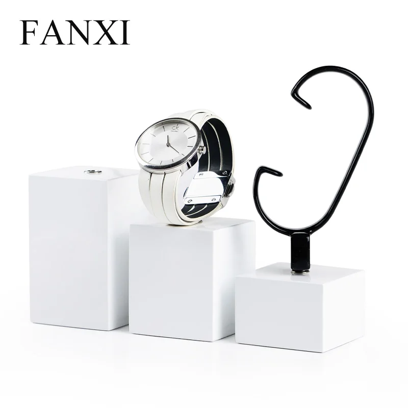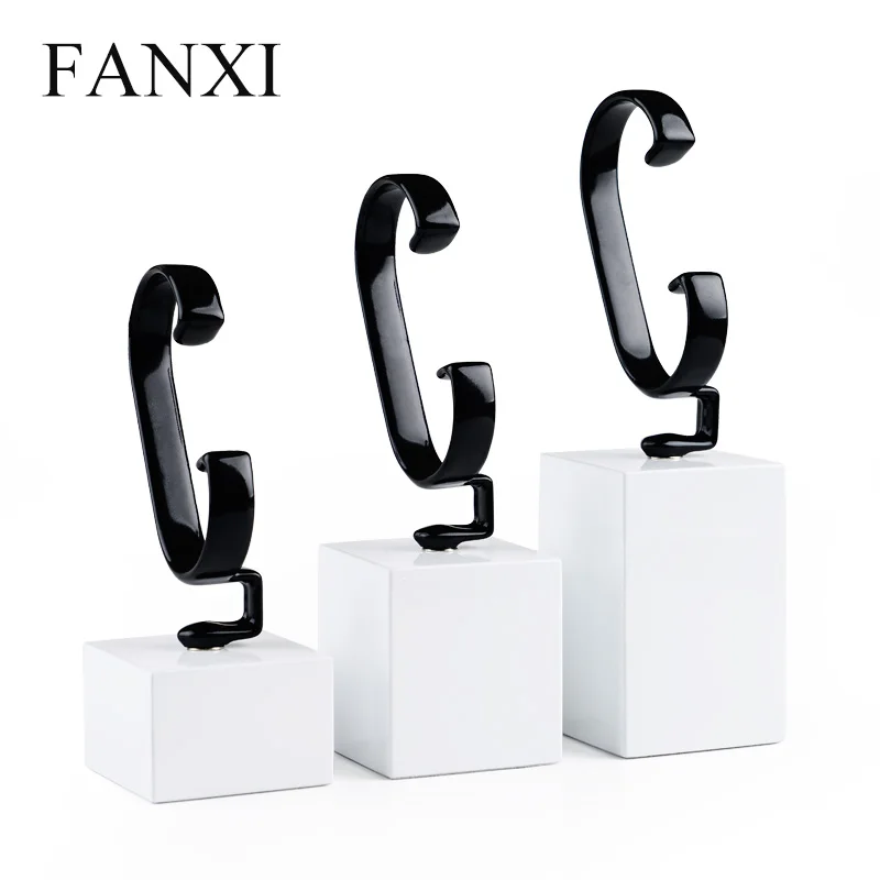 | 2016 the wholesale or retail white color soild wood baking paint material C shape jewelry display rack for hand chain or watch |