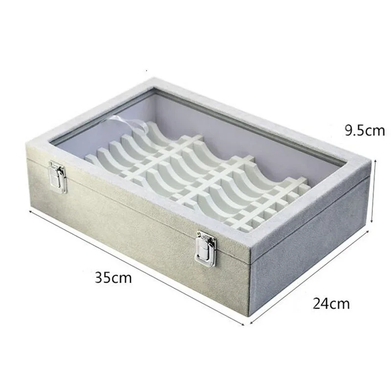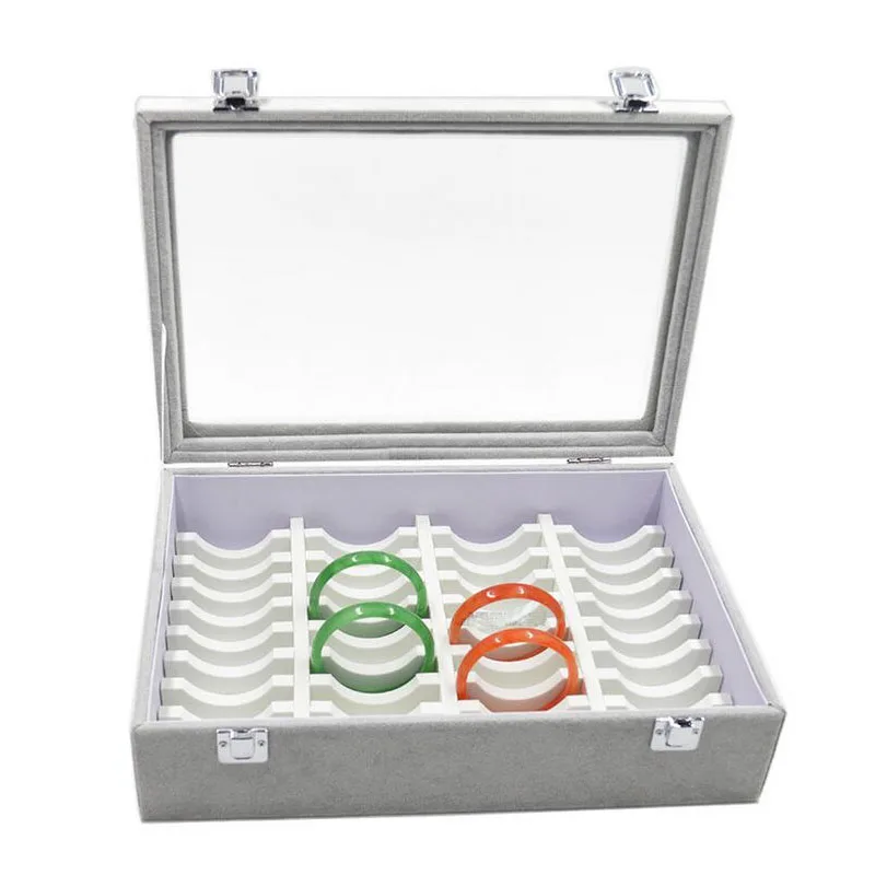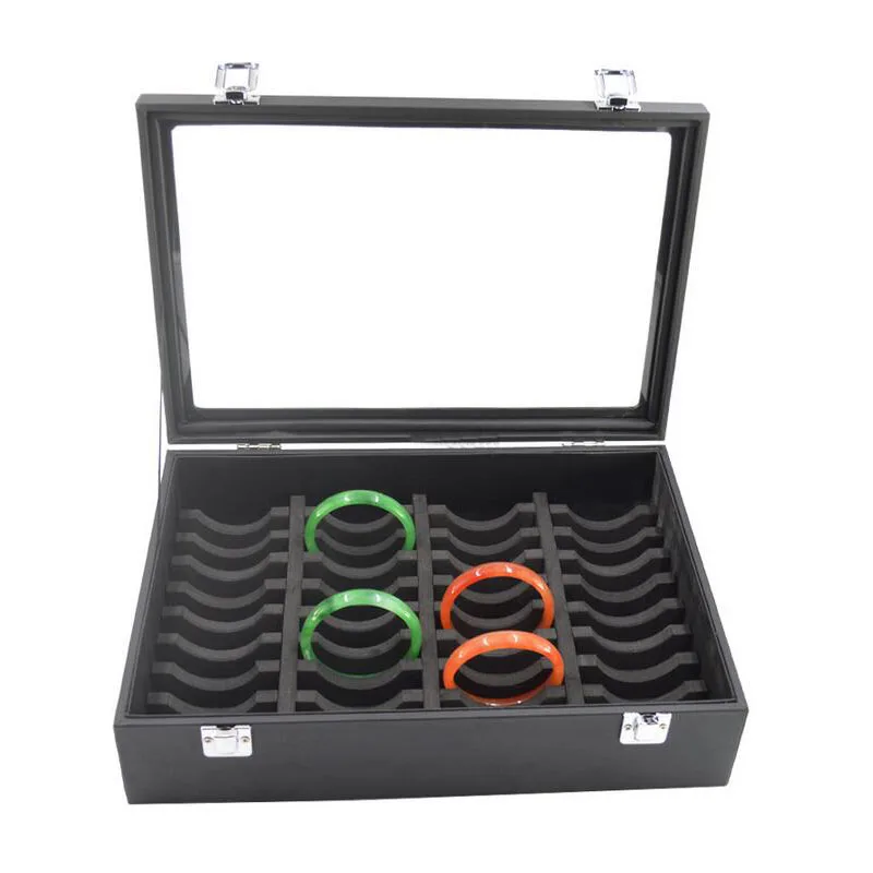 High Quality Jewellery Box with Clear Glass Lid for Showing 40pcs Bracelets Jewelry Organizer Made of PU Glasses and Plastic
