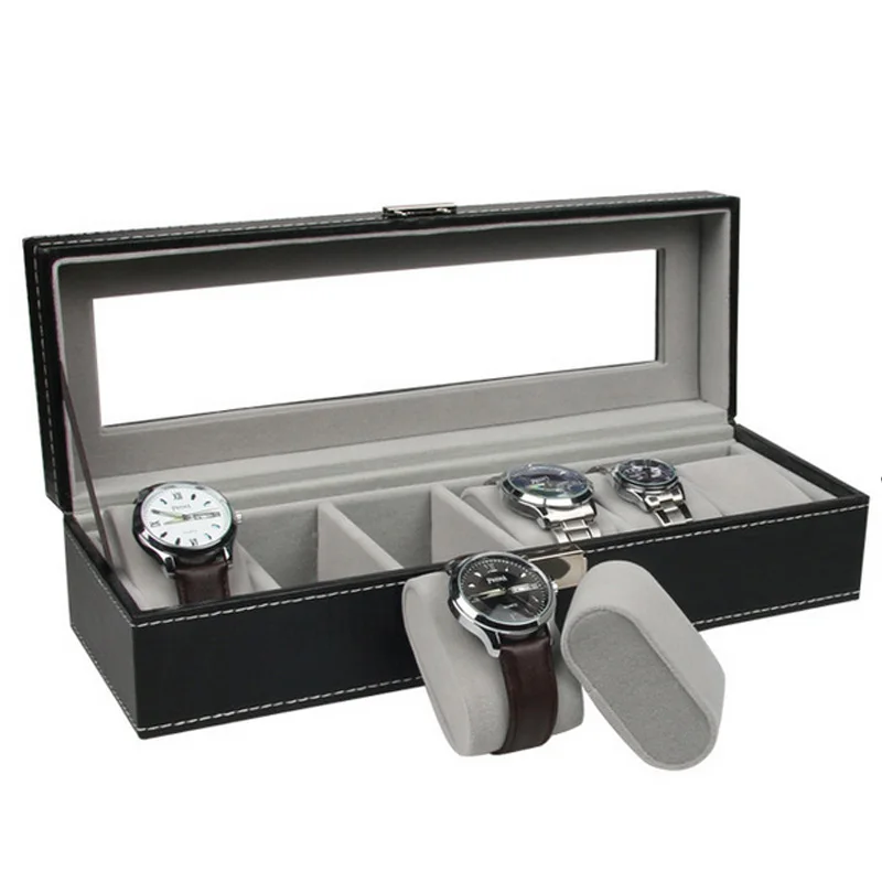 | Top Sale 10 Grids Luxury Jewelry Display Watch Case Black PU Leather Watch Boxes Storage Organizer Box |