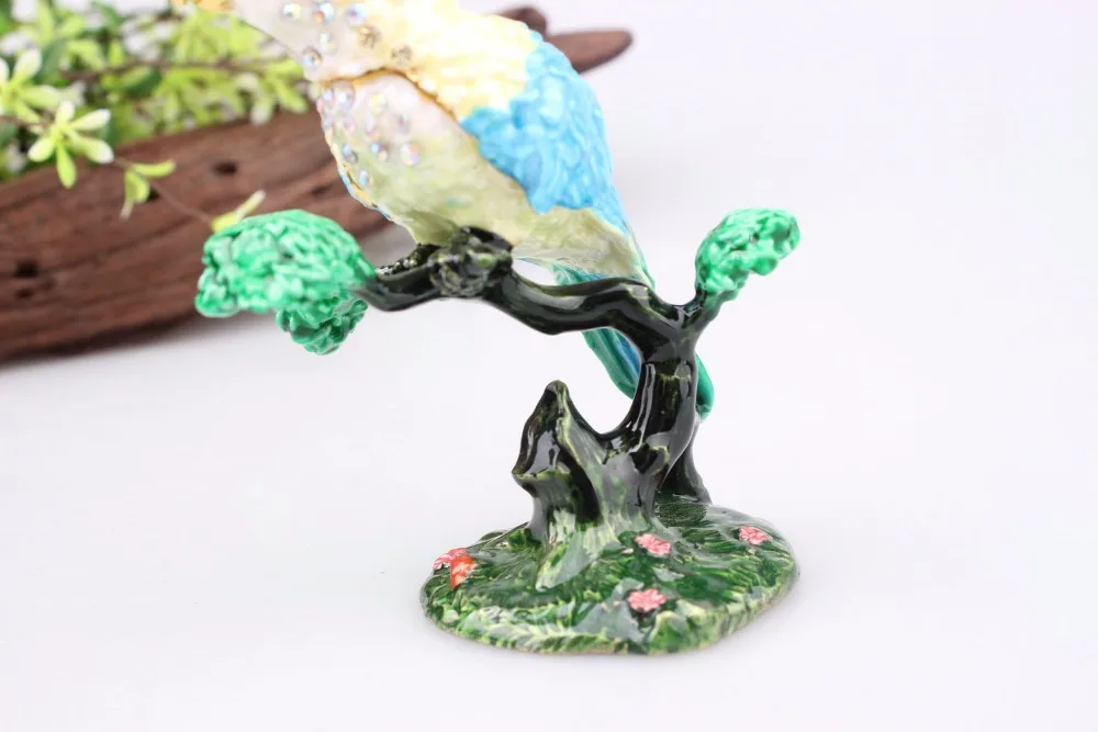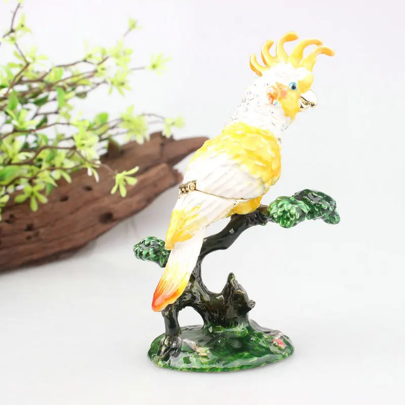 | Parrot Trinket Box Crystals Bird Jewelry Trinket Keepsake or Bird Pill Box Figurine |
